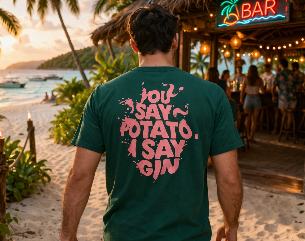 “You Say Potato, I Say Gin” is a t-shirt design created as a lighthearted homage to my late father, who had a well-known appreciation for gin.